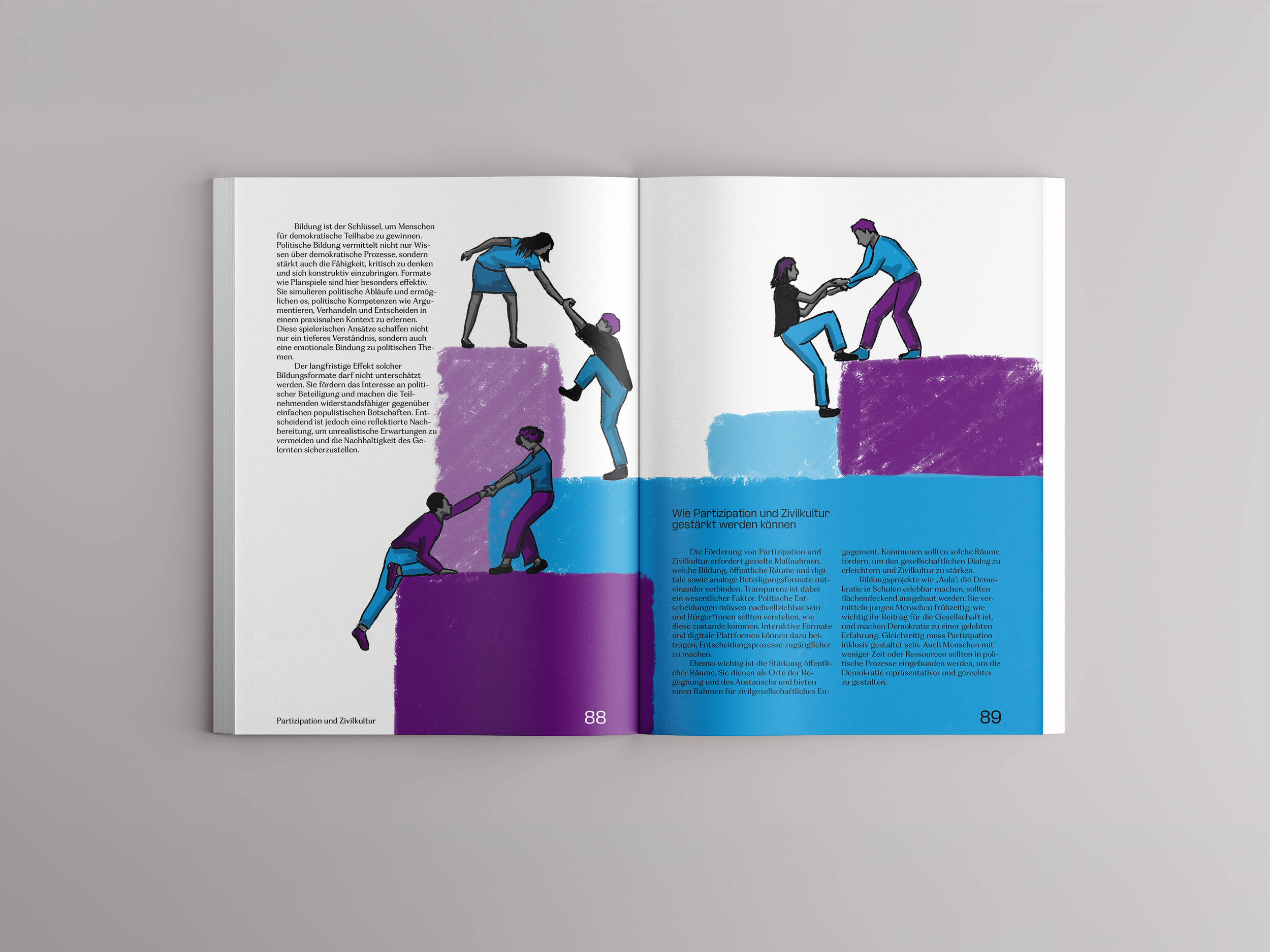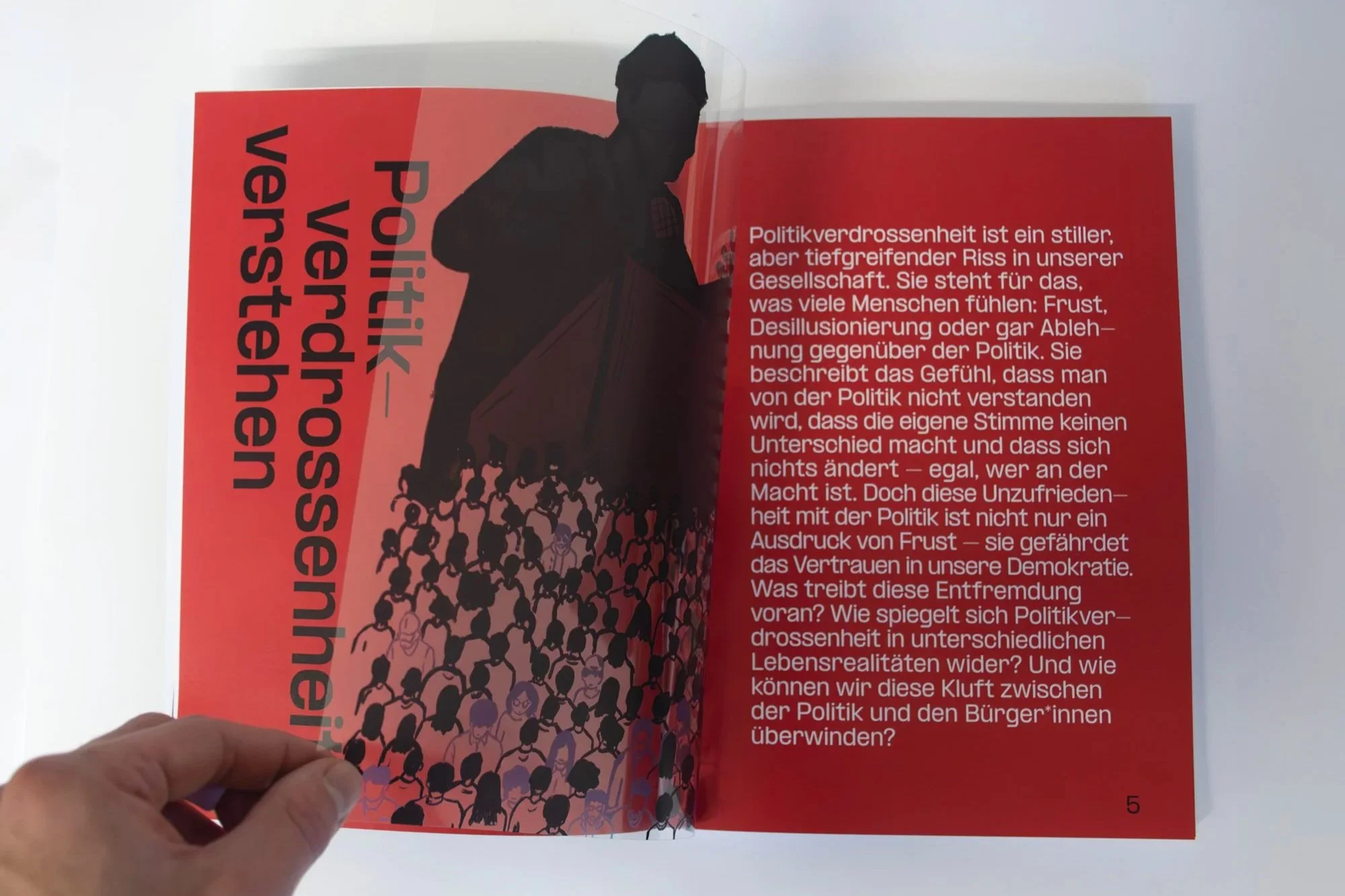 Das Magazin erklärt, warum viele Menschen das Vertrauen in die Politik verlieren, zeigt aber auch Wege auf, wie sich jede*r aktiv einbringen kann – sei es durch Wahlen, Bürgerinitiativen oder ehrenamtliches Engagement. Die Inhalte sind übersichtlich aufbereitet und leicht verständlich, damit sie möglichst viele Menschen erreichen.