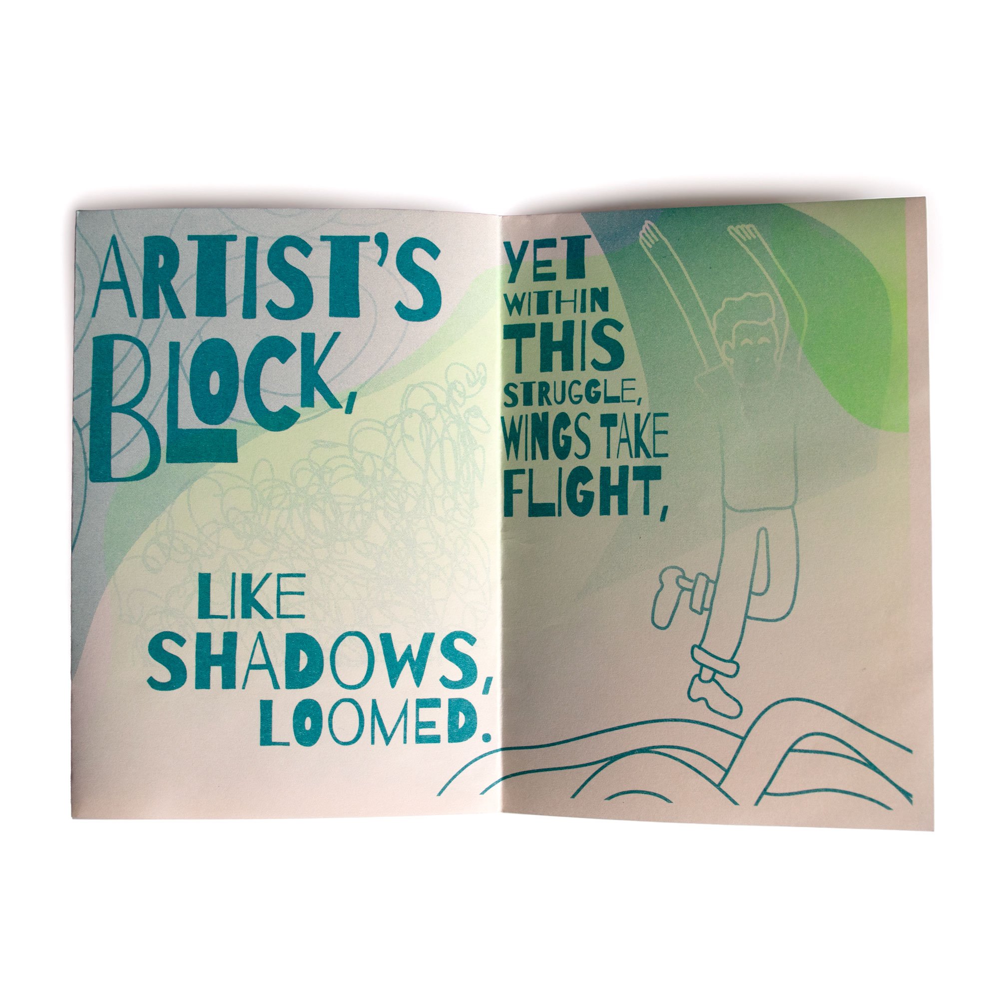 Was passiert, wenn die Leinwand leer bleibt? In diesem handgefalteten Zine setze ich mich mit dem lähmenden Gefühl des Art Blocks auseinander. Ein Projekt, das Poesie, Illustration und haptisches Handwerk verbindet.